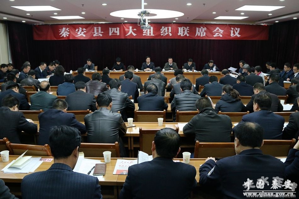 11月1日,秦安縣委書記王東紅主持召開秦安縣四大組織聯(lián)席會議,認(rèn)真學(xué)習(xí)傳達(dá)黨的十八屆六中全會和市第七次黨代會精神,安排部署近期全縣重點(diǎn)工作,縣四大組織在家領(lǐng)導(dǎo)及有關(guān)部門負(fù)責(zé)人參加了會議。