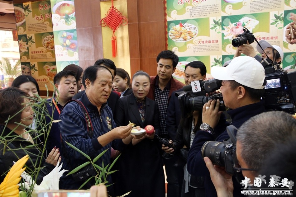 著名相聲表演藝術(shù)家牛群被秦安的特色美食深深吸引,他用手中的相機(jī)定格舌尖上的秦安美食,在品嘗了油餅蘸蒜后,豎起大拇指,積極為秦安特色名優(yōu)小吃代言,還不忘發(fā)出“美得蘸蒜哩”的感嘆。