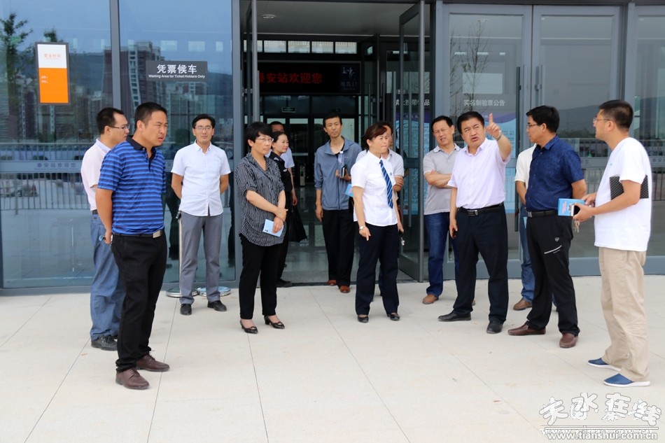 會后,程江芬、楊喜春一行來到寶蘭高鐵秦安站,實地察看了站前廣場及相關(guān)配套設(shè)施建設(shè),詢問了高鐵開通運營準(zhǔn)備情況,現(xiàn)場解決了相關(guān)困難和問題。