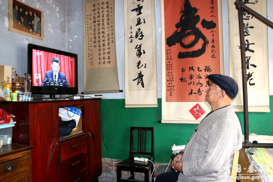 (縣人社局組織黨員干部收看大會實況) (千戶鎮(zhèn)村民在家中收看大會實況)