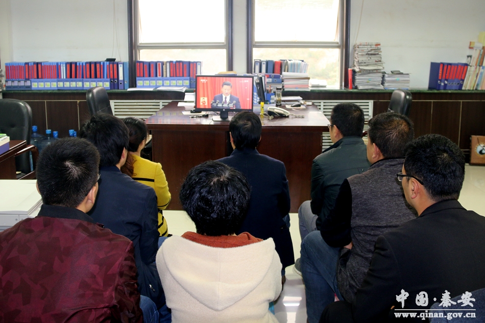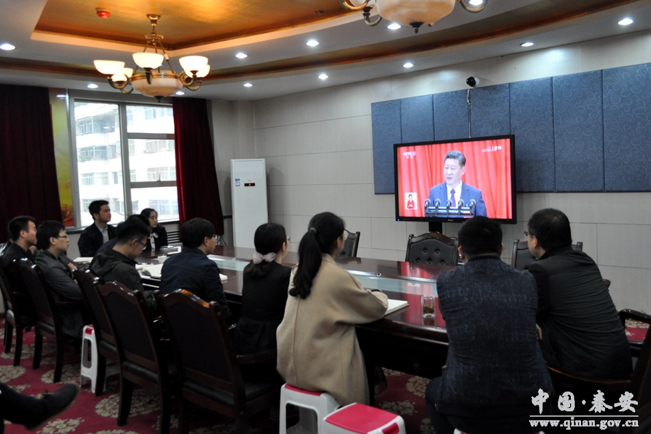 在縣行政中心南二樓視頻會議室,縣四大組織在家領導及機關干部100多人集中收看了黨的十九大開幕會盛況。在收看現(xiàn)場,大家全神貫注地聆聽了習近平總書記代表十八屆中央委員會所作的報告。全體與會人員無不為過去五年中國發(fā)生的巨大變化而高興,為精心構(gòu)建的未來發(fā)展藍圖而振奮,對決勝全面建成小康社會,奪取新時代中國特色社會主義偉大勝利,實現(xiàn)中華民族偉大復興的中國夢充滿信心。大家紛紛表示,要結(jié)合秦安的實際,認真學習貫徹落實好大會精神,圍繞既定的工作目標,團結(jié)和帶領全縣廣大干部群眾為加快實現(xiàn)全縣整體脫貧、全面建成小康社會而努力奮斗。