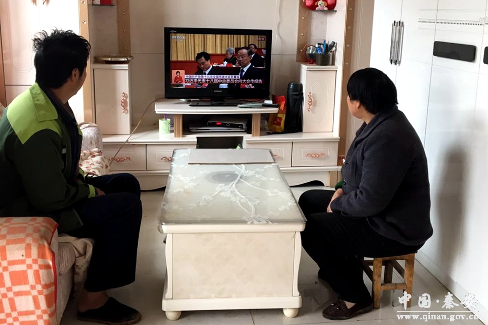 (千戶鎮(zhèn)村民在家中收看大會實況)