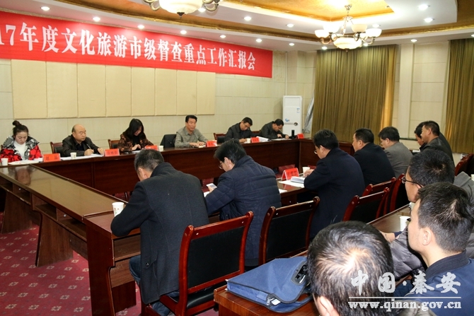 在隨后召開的匯報會上,縣文廣局相關負責人匯報了秦安縣2017年文化旅游產業(yè)發(fā)展情況;于劍鋒就秦安縣文化旅游產業(yè)發(fā)展情況進行了補充說明;市文化旅游局相關科室針對督查發(fā)現(xiàn)的問題進行了反饋;市文化旅游局副局長張惠原作了講話。