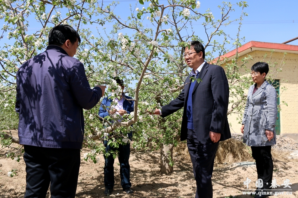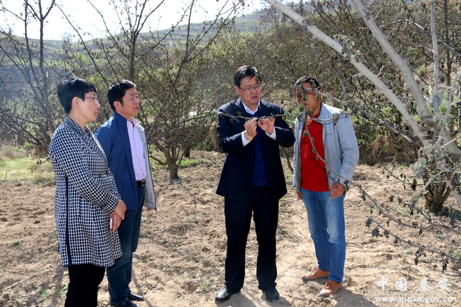4月8日,秦安縣委書記王東紅,縣委副書記、縣長程江芬?guī)ьI(lǐng)縣委辦、政府辦、果業(yè)局等部門單位負(fù)責(zé)人深入劉坪、葉堡、安伏、郭嘉等鎮(zhèn)田間地頭,通過實(shí)地查看、聽取匯報(bào)、與受災(zāi)群眾交談等方式,詳細(xì)了解了全縣林果業(yè)受災(zāi)以及防災(zāi)減災(zāi)措施落實(shí)等情況。
