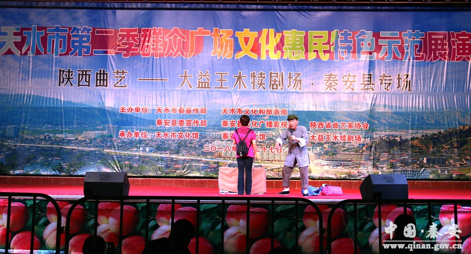 7月27日晚,由市委宣傳部、市文旅局、秦安縣委宣傳部、縣文廣局、陜西省曲藝協(xié)會(huì)主辦,市文化館、縣文化館、大益王木犢劇場(chǎng)承辦的“天水市第二季群眾廣場(chǎng)文化惠民特色示范展演之陜西曲藝——大益王木犢劇場(chǎng)秦安縣專場(chǎng)演出”活動(dòng)在興國鎮(zhèn)文化廣場(chǎng)舉行?h委常委、縣政府副縣長辛召東,縣政府副縣長于劍鋒,市文化館館長李靖,縣直部門、駐秦各單位,各鎮(zhèn)相關(guān)負(fù)責(zé)人及廣大干部群眾觀看了展演。