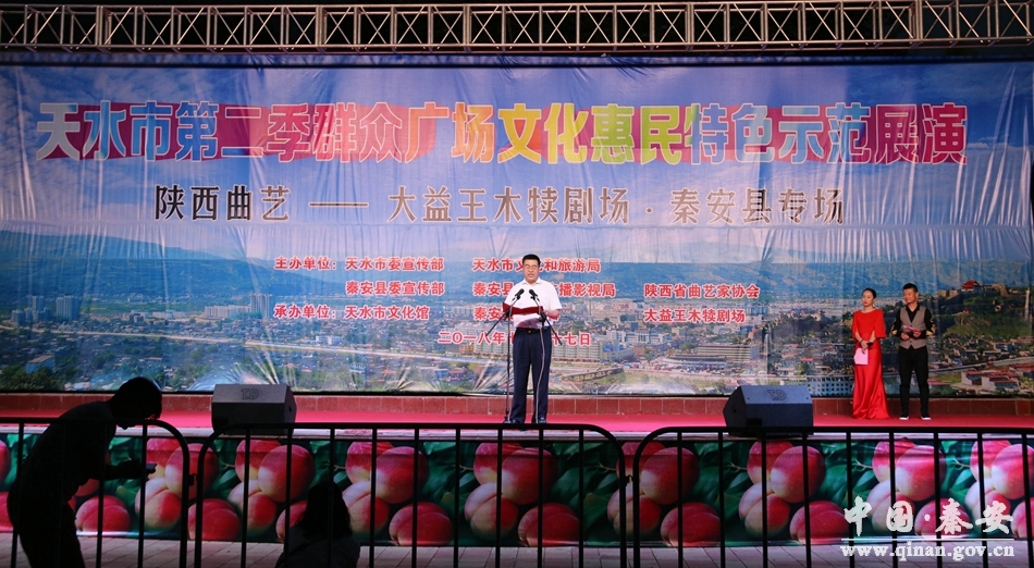 演出前,縣政府副縣長于劍鋒作了致辭。他說,大益王木犢劇場(chǎng)來秦安縣演出是天水市第二季群眾廣場(chǎng)文化惠民特色示范展演的重要內(nèi)容,也是秦安縣貫徹落實(shí)省市關(guān)于開展群眾廣場(chǎng)文化惠民特色示范展演活動(dòng)的重要舉措。此次演出必將對(duì)推動(dòng)全縣文化繁榮發(fā)展、推進(jìn)全縣文明城市創(chuàng)建步伐起到積極的作用。希望全縣文化部門和廣大文藝工作者全面落實(shí)習(xí)近平總書記對(duì)烏蘭牧騎“紅色文藝輕騎兵”重要指示精神,大力加強(qiáng)文化交流,深入基層、深入貧困村,積極開展群眾廣場(chǎng)文化惠民特色示范展演活動(dòng),創(chuàng)作群眾喜聞樂見的高質(zhì)量文化作品,爭(zhēng)做新時(shí)代“紅色文藝輕騎兵”,為助力打好打贏精準(zhǔn)脫貧攻堅(jiān)戰(zhàn),全面建成小康社會(huì)做出新的更大貢獻(xiàn)。