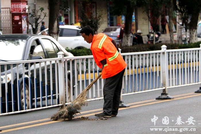 深秋早晨的秦安,有些冷,記者在蔡林路、成紀大道等路段看到,戴著口罩、穿著橙色工作服的環(huán)衛(wèi)工人像往常一樣推著三輪車,用手中的掃帚和簸箕潔凈著每一條路段。一位開鋪面的中年人告訴記者,這一路的環(huán)衛(wèi)工人確實敬業(yè),他們從凌晨5點開始,一整天都在不間斷地做著清掃工作,因為有時剛掃過的路面,有人又會將垃圾扔在路面上。節(jié)假日期間的人車流量和瀟瀟落葉見證著他們的起早貪黑與任勞任怨。