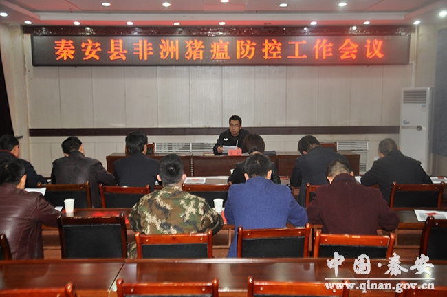 11月2日,秦安縣政府副縣長、縣防制重大動物疫病指揮部指揮長文斌主持召開全縣非洲豬瘟防控工作會?h防制重大動物疫病指揮成員單位負責人,縣畜牧局專業(yè)技術人員參加會議。