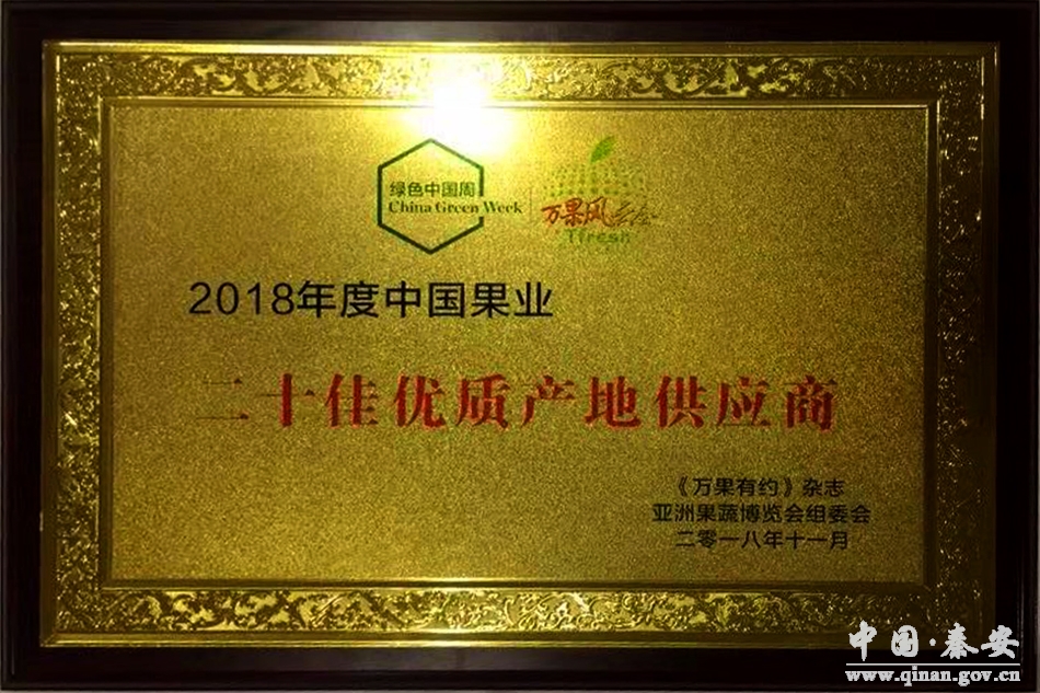 11月21至23日,2018萬果風(fēng)云——第十一屆亞洲果蔬博覽會(huì)在上海國(guó)家會(huì)展中心舉行,秦安展團(tuán)備受矚目并取得了豐碩成果。秦安縣榮獲《萬果有約》雜志和亞洲果蔬博覽會(huì)組委會(huì)共同授予的“2018年度中國(guó)果業(yè)二十佳優(yōu)質(zhì)產(chǎn)地供應(yīng)商”稱號(hào)。