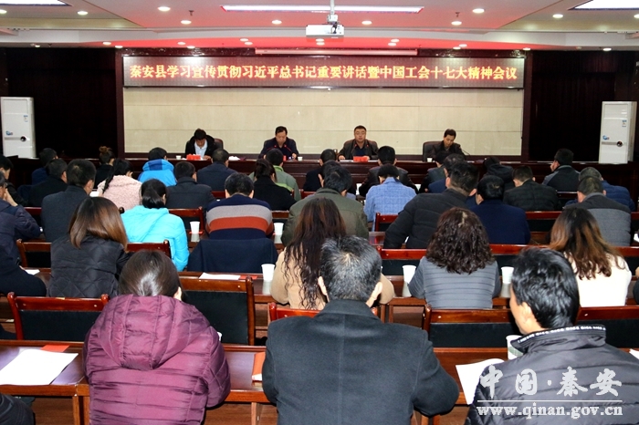 11月27日,秦安縣召開(kāi)學(xué)習(xí)貫徹習(xí)近平總書(shū)記重要講話精神和中國(guó)工會(huì)十七大精神會(huì)議?h委副書(shū)記王龍強(qiáng),縣工會(huì)十一次代表大會(huì)全體委員、17個(gè)鎮(zhèn)工會(huì)主席、縣直系統(tǒng)工會(huì)主席、非公企業(yè)工會(huì)主席及縣總工會(huì)機(jī)關(guān)干部共計(jì)80余人參加會(huì)議。