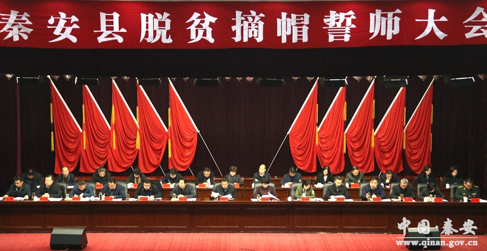 2月13日,秦安縣召開全縣脫貧摘帽誓師大會(huì)。市扶貧辦副主任郭湘,縣四大組織在家領(lǐng)導(dǎo)、法檢兩長,各鎮(zhèn)黨委書記、鎮(zhèn)長、分管負(fù)責(zé)人、精準(zhǔn)扶貧站副站長,縣直各部門、駐秦各單位主要負(fù)責(zé)人,縣脫貧攻堅(jiān)領(lǐng)導(dǎo)小組成員單位分管負(fù)責(zé)人,193個(gè)貧困村黨支部書記和駐村幫扶工作隊(duì)隊(duì)長共計(jì)580多人參加了會(huì)議。會(huì)議由縣委副書記王龍強(qiáng)主持。