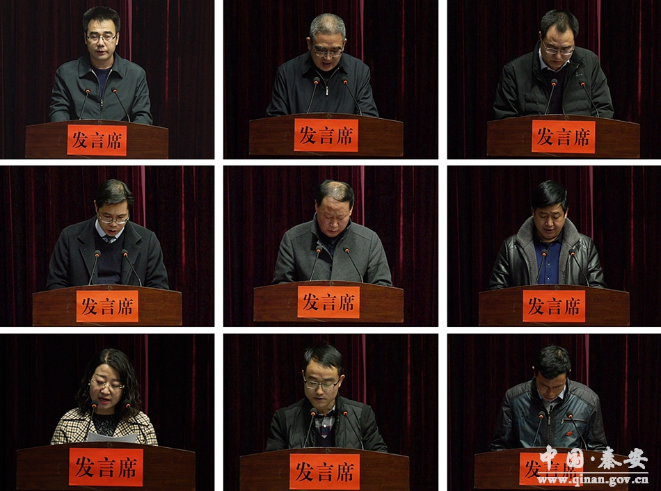 會(huì)上,縣委副書記王龍強(qiáng)傳達(dá)學(xué)習(xí)了習(xí)近平總書記關(guān)于脫貧攻堅(jiān)工作的重要論述精神;縣政府副縣長文斌傳達(dá)了省、市主要領(lǐng)導(dǎo)有關(guān)脫貧攻堅(jiān)工作的批示精神;縣政府副縣長文斌、部分鎮(zhèn)、縣直部門、駐村幫扶工作隊(duì)、貧困村黨支部代表分別作了誓師發(fā)言;縣委副書記、縣長程江芬代表縣委、縣政府與脫貧攻堅(jiān)專責(zé)工作組簽訂了軍令狀,并與各包鎮(zhèn)領(lǐng)導(dǎo)、17鎮(zhèn)主要負(fù)責(zé)人分別簽訂了軍令狀;縣委常委、組織部部長肖江與駐村幫扶工作隊(duì)簽訂了軍令狀;市扶貧辦副主任郭湘,秦安縣委副書記、縣長程江芬分別作了講話。