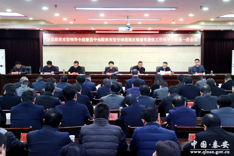 會(huì)議由縣委副書(shū)記王龍強(qiáng)主持。會(huì)上,副縣長(zhǎng)文斌領(lǐng)學(xué)了習(xí)近平總書(shū)記關(guān)于扶貧開(kāi)發(fā)工作的重要論述摘編部分內(nèi)容,并宣讀了《中共秦安縣委辦公室關(guān)于成立秦安縣中央脫貧攻堅(jiān)專(zhuān)項(xiàng)巡視反饋意見(jiàn)整改工作領(lǐng)導(dǎo)小組的通知》;縣委組織部、縣農(nóng)業(yè)農(nóng)村局、縣衛(wèi)生健康局負(fù)責(zé)人圍繞2019年各自承擔(dān)的專(zhuān)責(zé)組任務(wù)謀劃落實(shí)情況依次作了發(fā)言;縣紀(jì)委監(jiān)委、縣扶貧辦、縣水務(wù)局負(fù)責(zé)人圍繞中央脫貧攻堅(jiān)專(zhuān)項(xiàng)巡視反饋意見(jiàn)和省委巡視反饋意見(jiàn)整改進(jìn)展情況依次作了發(fā)言?h委副書(shū)記、縣長(zhǎng)程江芬作了講話(huà)。