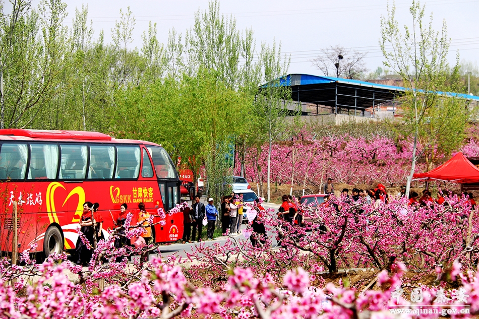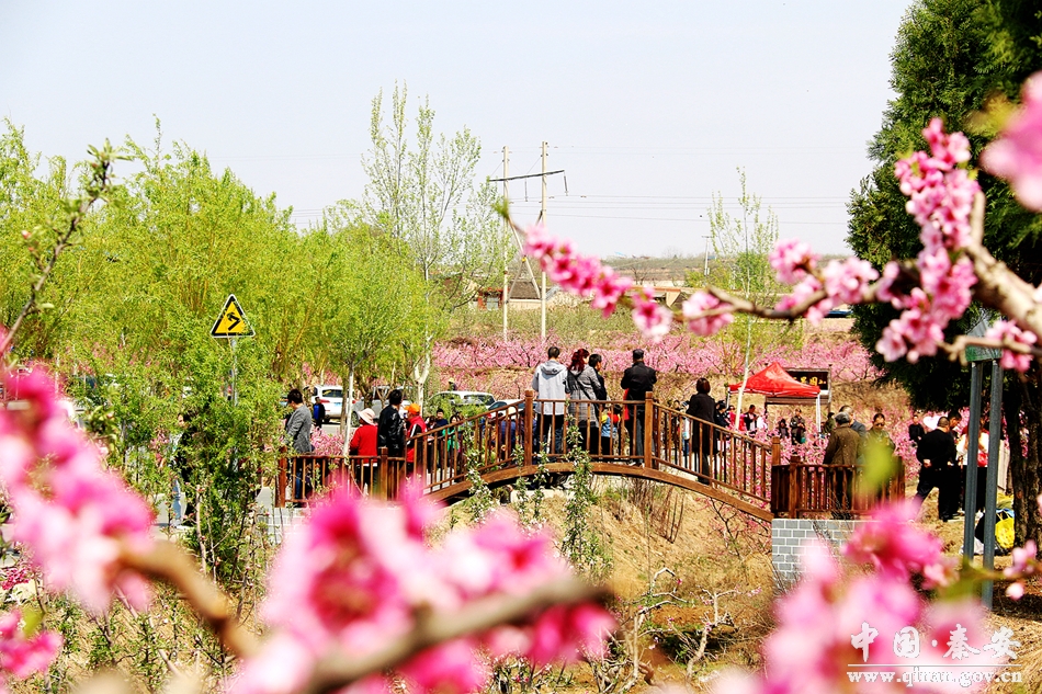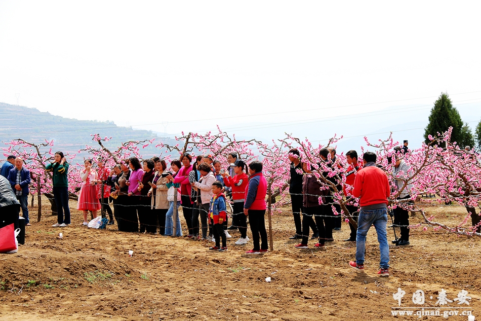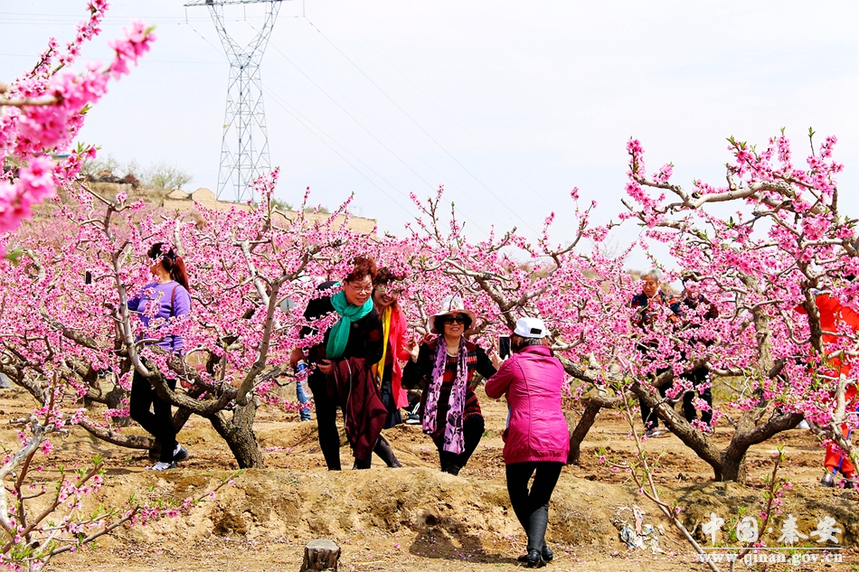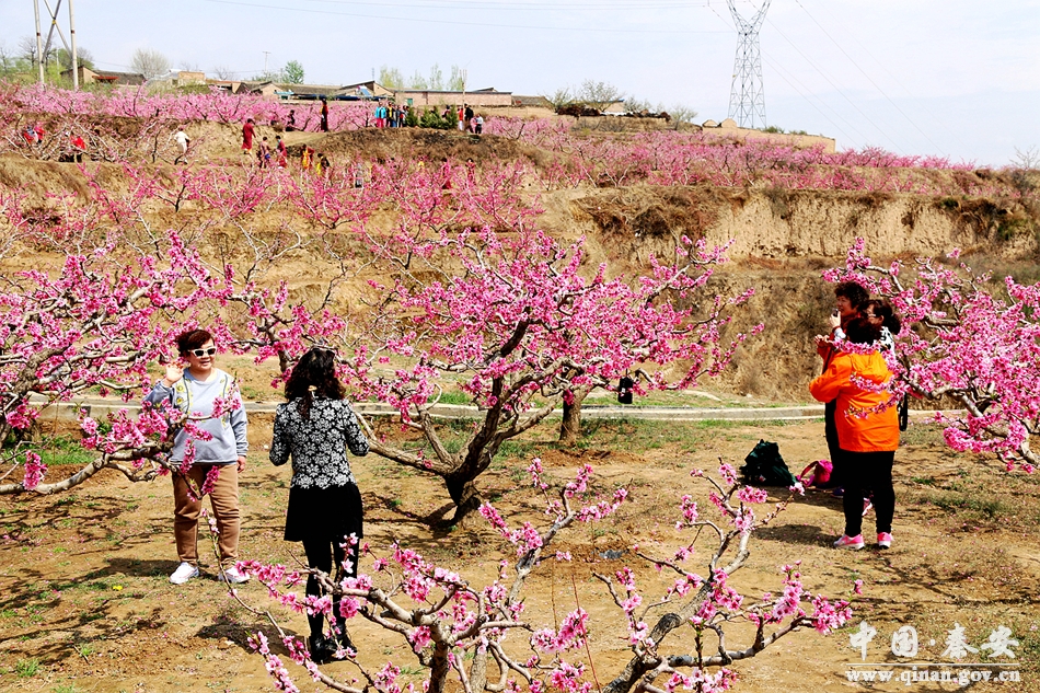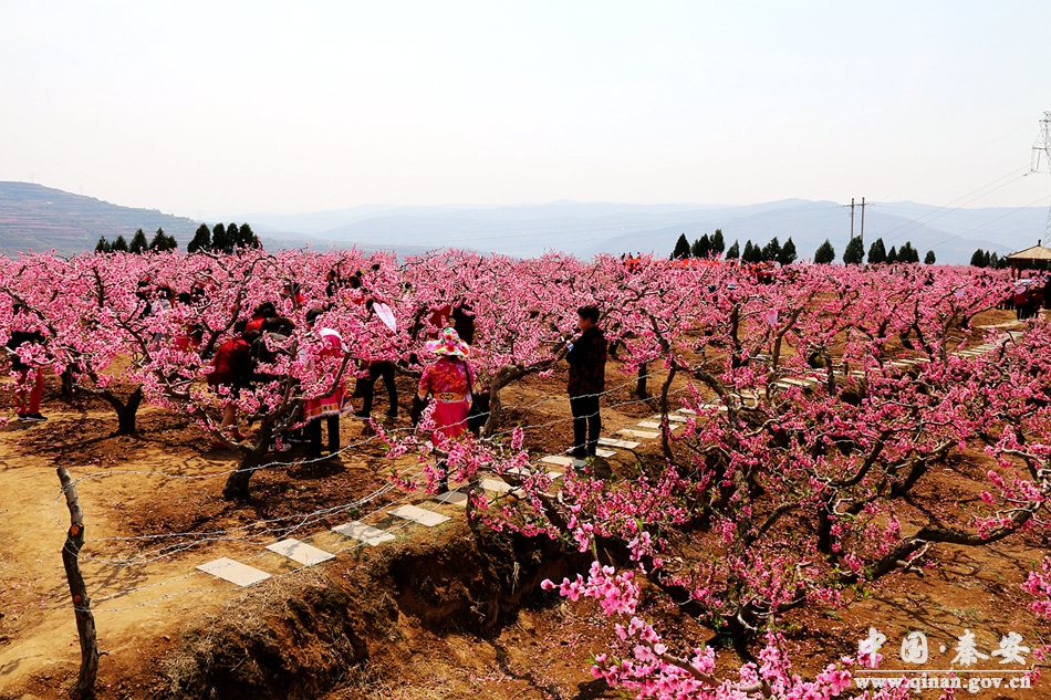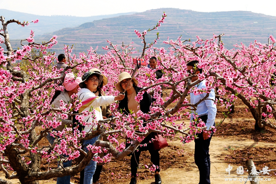 (秦安桃花競相綻放 游人聞訊紛至沓來)
