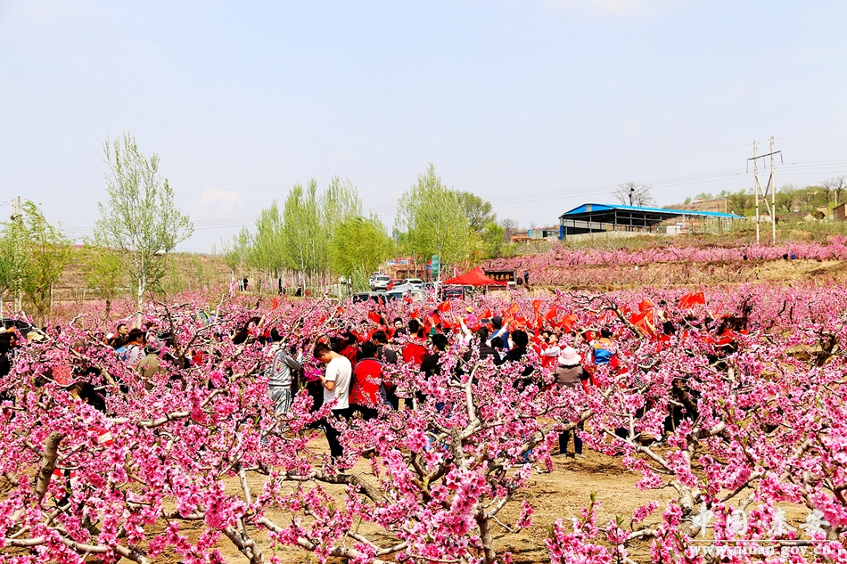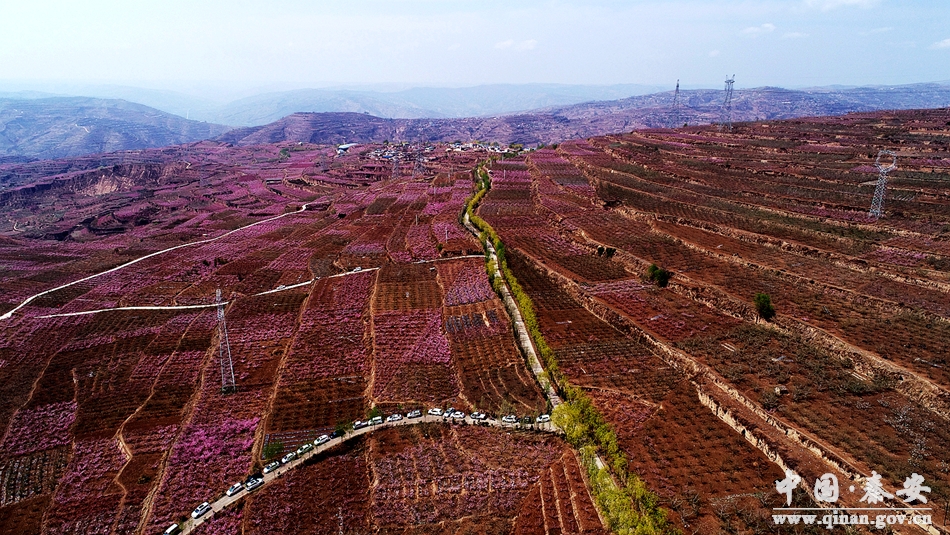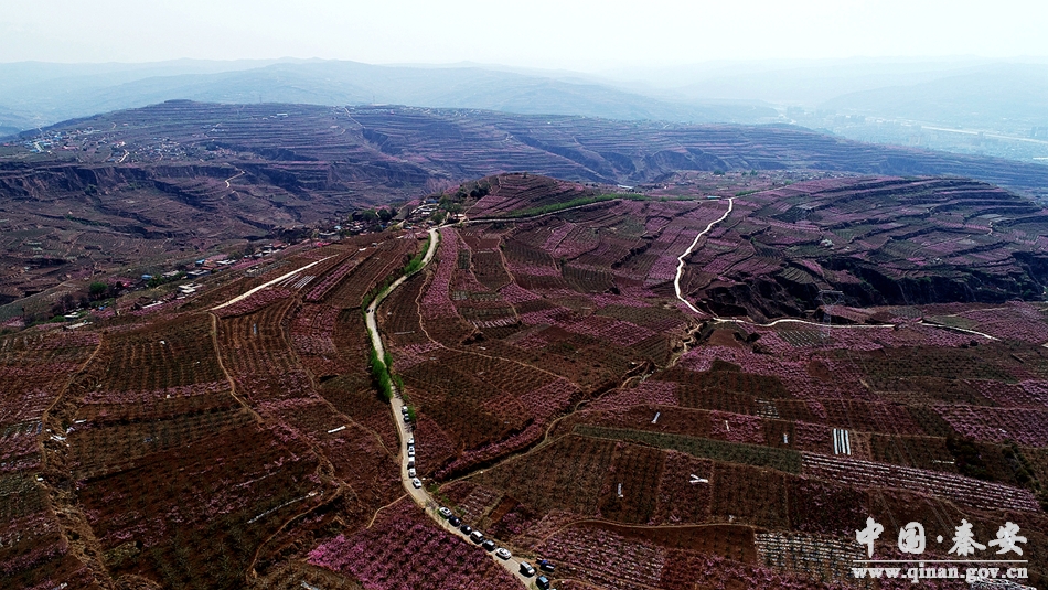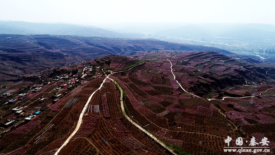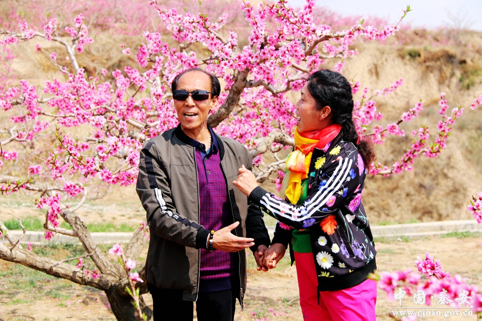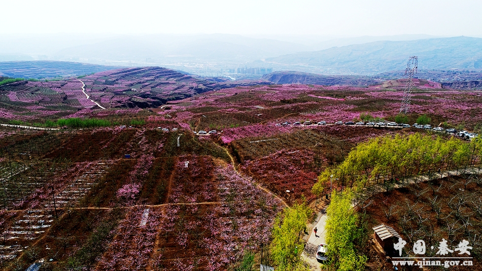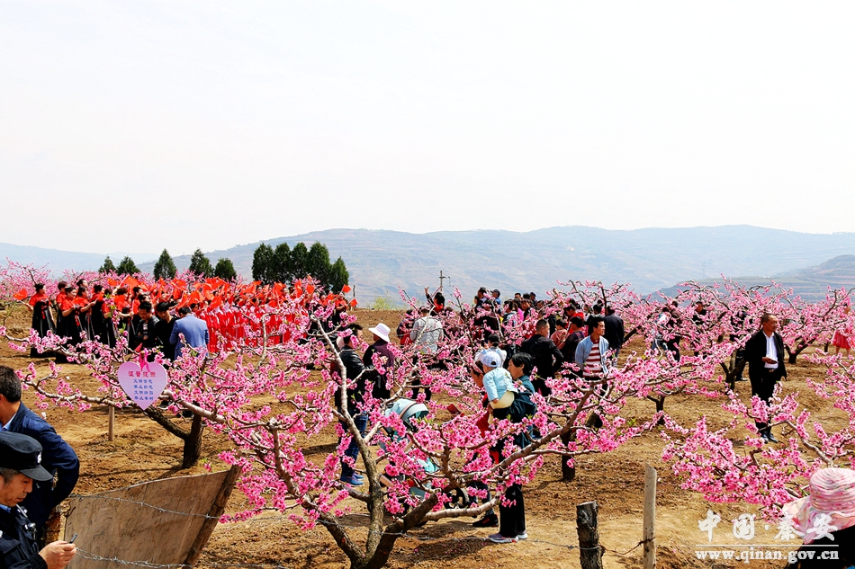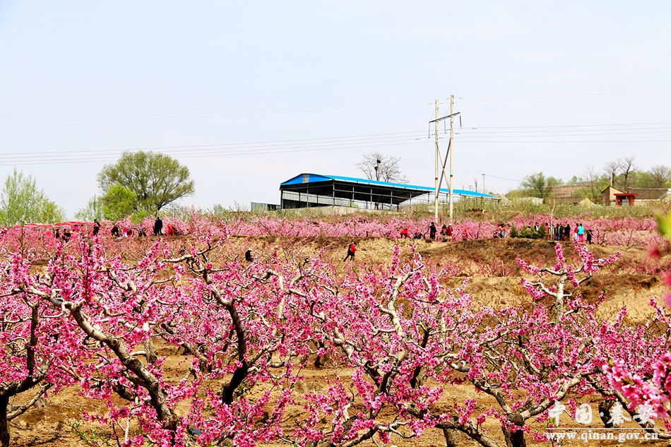 (秦安桃花競相綻放 游人聞訊紛至沓來)