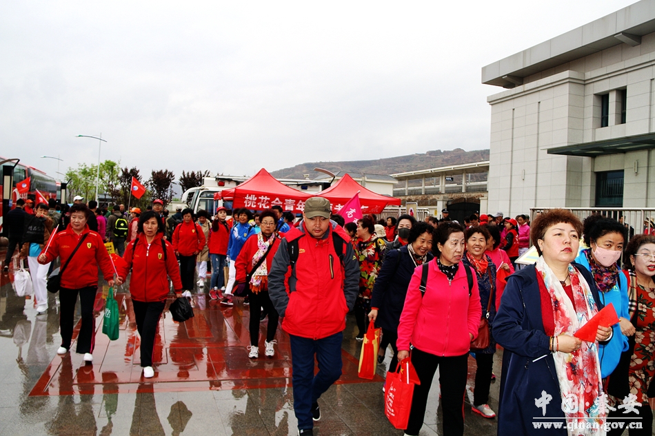 4月12日,“環(huán)西部火車游,相約秦安桃花會”高鐵賞花專列載著300多名游客到達秦安賞花踏青。