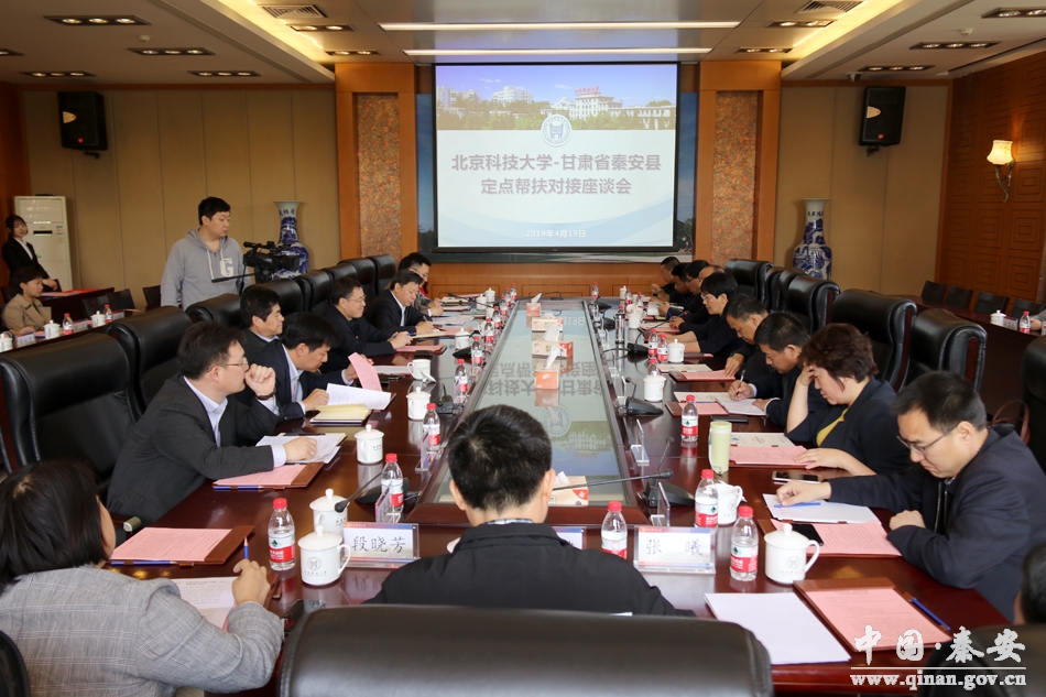 4月19日,秦安縣委副書記、縣長(zhǎng)程江芬,縣人大常委會(huì)副主任張來祿、縣政協(xié)副主席張榮生帶領(lǐng)縣政府辦、衛(wèi)生健康局、人社局、商務(wù)局、扶貧辦、縣醫(yī)院負(fù)責(zé)人,赴北京科技大學(xué)開展定點(diǎn)幫扶對(duì)接。
