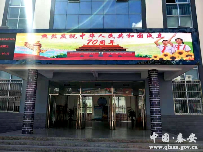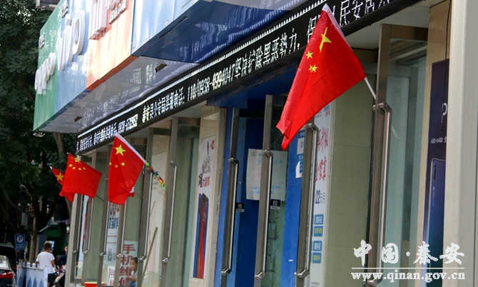 五星紅旗隨風(fēng)招展,喜悅之情承載著對美好未來的向往。秦安縣主次干道、鎮(zhèn)村沿街店面、被懸掛整齊的五星紅旗裝扮的極為耀眼,轄區(qū)企事業(yè)單位、社區(qū)小區(qū)、建筑工地也升掛國旗,懸掛國慶標(biāo)語,開展群眾性文化活動等。同時還利用LED顯示屏、辦事大廳顯示屏等滾動播放“熱烈慶祝中華人民共和國成立70周年”、“人民有信仰 國家有力量 民族有希望”等主題宣傳標(biāo)語,既呈現(xiàn)出了秦安人民在祖國大家庭懷抱里安定團結(jié)祥和的良好社會氛圍,也再一次激發(fā)著廣大干部群眾對黨、對祖國母親無盡的熱愛,昭示著廣大干部群眾感黨恩、聽黨話、跟黨走的信心和決心。