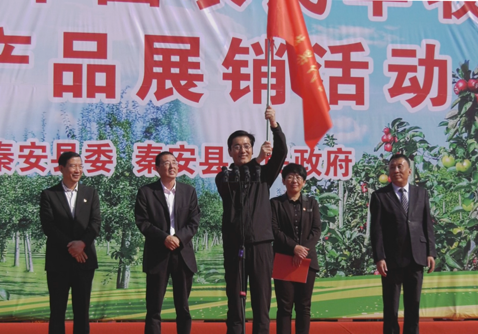 開幕式上,縣委副書記、縣長程江芬致辭;甘肅銀行秦安支行分別與盛源菊香農(nóng)業(yè)發(fā)展有限公司、秦安縣軍祥果椒專業(yè)合作社簽訂了金融助力精準(zhǔn)脫貧協(xié)議,金陽光建設(shè)實業(yè)集團與秦安縣五峰果品專業(yè)合作社簽訂了果品蘋果購銷協(xié)議,太平洋保險甘肅分公司與秦安縣博盛農(nóng)業(yè)產(chǎn)業(yè)扶貧開發(fā)有限公司簽訂了消費扶貧協(xié)議;縣人大常委會主任郭海軍為“我為秦安蘋果代言”公益媒體宣傳小分隊授旗。開幕式由縣委副書記王炤俊主持。