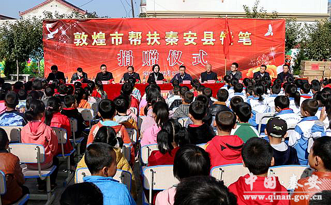 “老師,您快看,操場(chǎng)那邊怎么會(huì)有這么多漂亮的鉛筆!”蓮花中心小學(xué)四年級(jí)(1)班的學(xué)生們開心地說(shuō)道。10月17日,敦煌市駐秦安幫扶總隊(duì)為蓮花中心小學(xué)捐贈(zèng)400余萬(wàn)支愛(ài)心鉛筆。此次活動(dòng)既是敦煌市深化對(duì)口幫扶,助力秦安縣脫貧摘帽的有力舉措,也是敦煌人民情系教育、捐資助學(xué)的拳拳愛(ài)心。