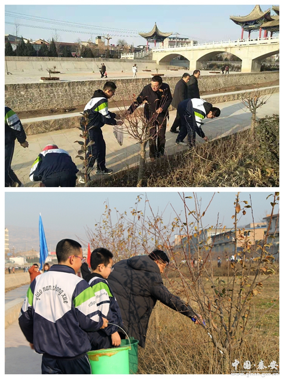 為了響應(yīng)秦安縣委、縣政府對(duì)南小河流域河道管理和全域無(wú)垃圾治理工作的號(hào)召,培養(yǎng)學(xué)生社會(huì)實(shí)踐能力,提高學(xué)生愛(ài)護(hù)家鄉(xiāng)、保護(hù)環(huán)境的責(zé)任意識(shí),將保護(hù)南小河的觀念真正落實(shí)到行動(dòng)中,使學(xué)生在日常生活中能夠做到自覺(jué)踐行社會(huì)主義核心價(jià)值觀,用自己的雙手為更加美麗的城鎮(zhèn)建設(shè)貢獻(xiàn)一份力量。12月11日,秦安縣橋南中學(xué)組織八年級(jí)全體師生、校全體黨員、部分家長(zhǎng)共計(jì)一千四百余人,對(duì)南小河垃圾進(jìn)行集中清理?h人大常委會(huì)主任郭海軍,縣委常委、興國(guó)鎮(zhèn)黨委書(shū)記王明,縣人大常委會(huì)副主任張耀清一同參加活動(dòng)。