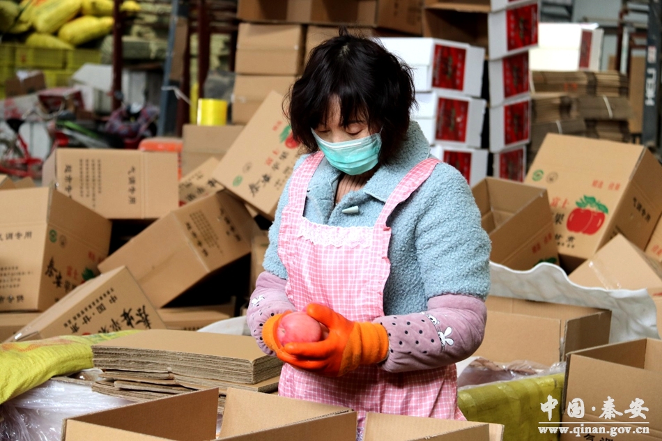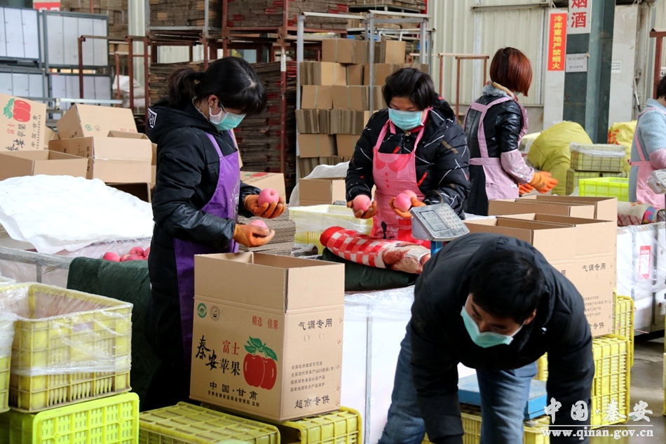 位于秦安縣葉堡鎮(zhèn)的甘肅安軍農(nóng)業(yè)有限公司,主要經(jīng)營果品收購,貯藏、銷售,自疫情發(fā)生以來,為了保障市場供應(yīng),杜絕哄抬物價(jià),該公司積極復(fù)工,為打贏新冠肺炎疫情貢獻(xiàn)一份力量。走進(jìn)該公司廠區(qū),入口處設(shè)有檢測臺,室內(nèi)消毒液、口罩、手套等防護(hù)消殺品整齊擺放,生產(chǎn)車間內(nèi)選果線正常運(yùn)轉(zhuǎn),戴著口罩的工人們在分級、挑揀、裝箱、打包、堆垛,各項(xiàng)工作在緊張有序開展中。