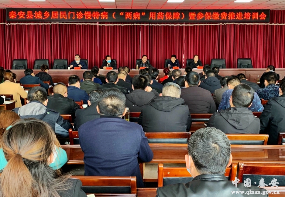 3月18日,秦安縣召開城鄉(xiāng)居民門診慢特。ā皟刹 遍T診用藥保障)暨參保繳費推進培訓會。秦安縣政府副縣長張強及縣脫貧攻堅指揮部、縣醫(yī)保局、縣衛(wèi)健局、縣稅務局、縣殘聯(lián)主要負責人,各鎮(zhèn)人民政府分管副鎮(zhèn)長、健康醫(yī)保專干,各鎮(zhèn)衛(wèi)生院(衛(wèi)生分院)院長、醫(yī)保經(jīng)辦人員,縣直醫(yī)療機構(gòu)負責人、醫(yī)保經(jīng)辦人員以及市、縣、鎮(zhèn)、村簽約醫(yī)生負責人共計100余人參加了培訓會。