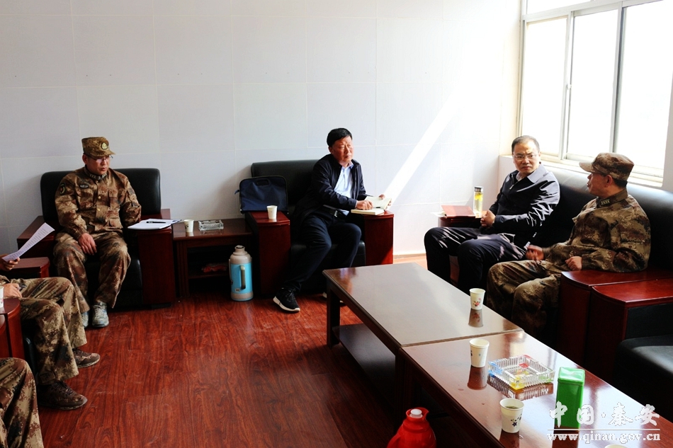 3月18日,甘肅省軍區(qū)常委、政治工作局主任劉琳一行在秦安縣王鋪鎮(zhèn)師山村調(diào)研脫貧攻堅工作,天水市軍分區(qū)政委石明,秦安縣委常委、副縣長辛召東,縣委常委、縣人武部政委張洪峰一同參加調(diào)研。