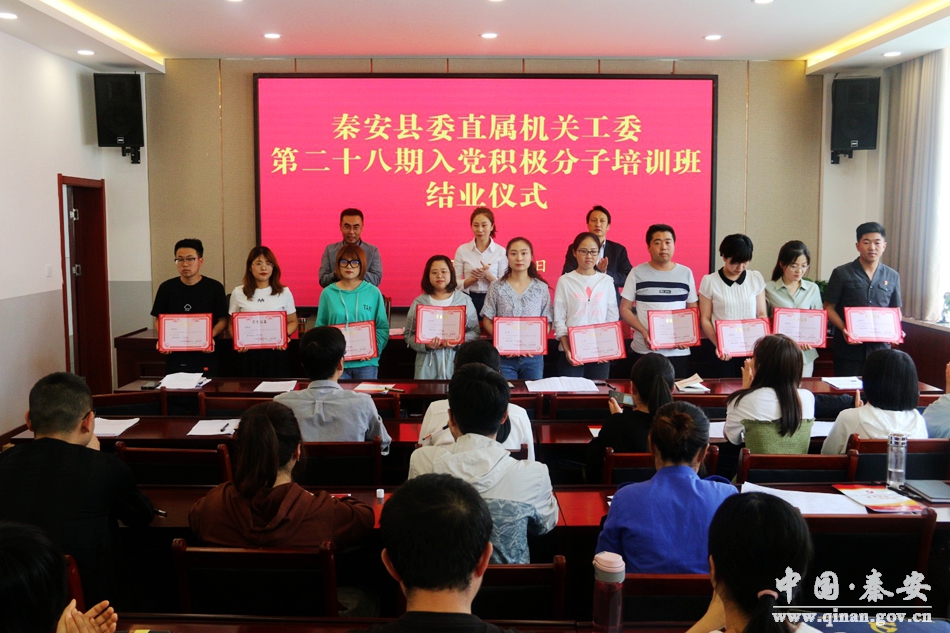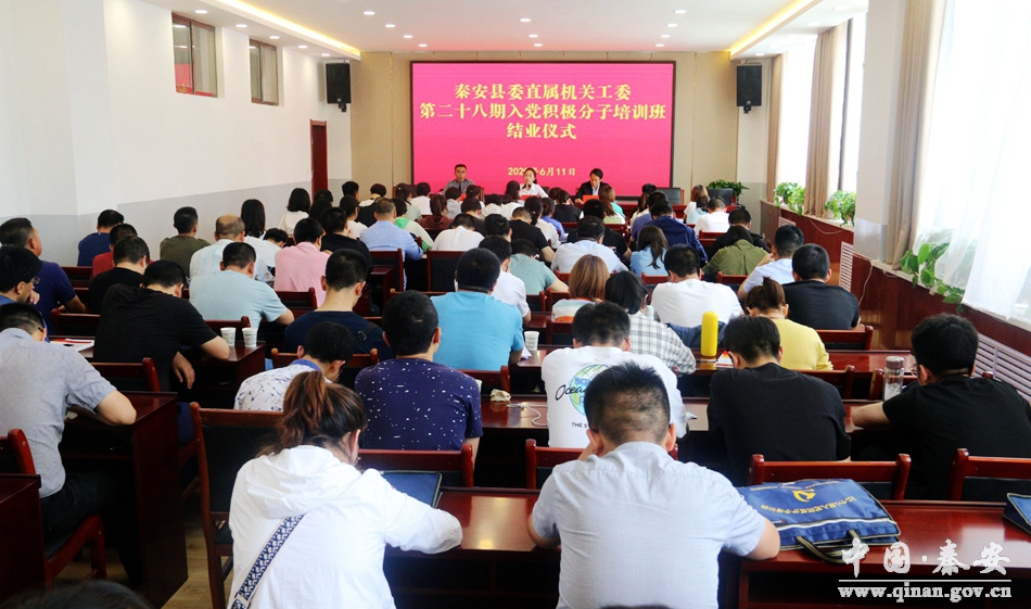 6月11日,由秦安縣委直屬機(jī)關(guān)工委、北京科技大學(xué)和縣委黨校聯(lián)合舉辦的秦安縣第二十八期入黨積極分子培訓(xùn)班在縣委黨校舉行結(jié)業(yè)儀式?h委直屬機(jī)關(guān)工委所屬的各級黨組織共122名入黨積極分子經(jīng)過6天的培訓(xùn),完成測試考試,順利結(jié)業(yè)。