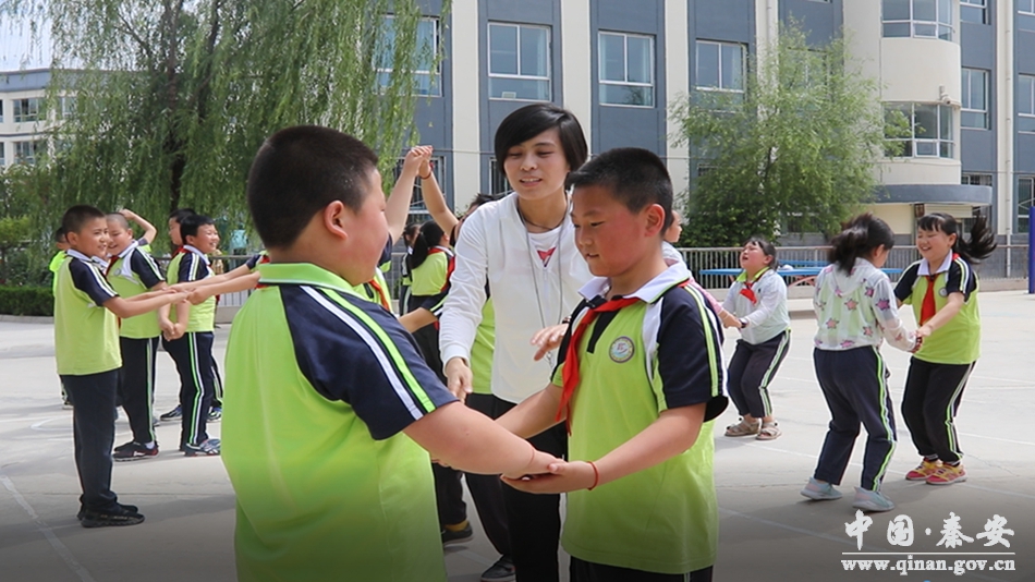 董曉蕾是2019年8月來秦安支教的老師,在興國二小見到她時,她身著運(yùn)動衣,齊耳短發(fā),正頂著艷陽在操場上給學(xué)生上體育課,帶學(xué)生做各種活動及游戲,并給學(xué)生示范指導(dǎo)動作。