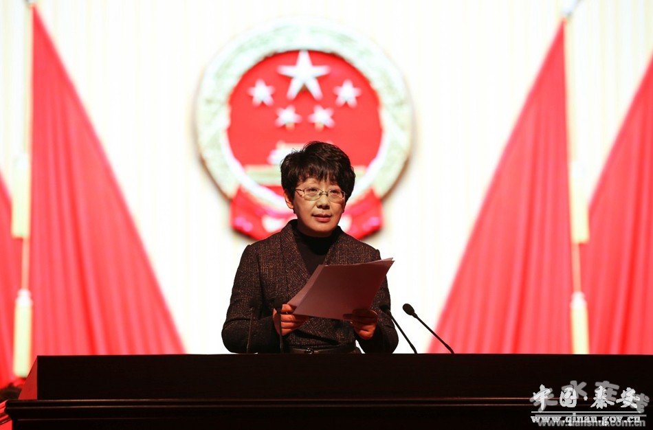 在熱烈的掌聲中,秦安縣人民政府縣長(zhǎng)程江芬代表縣政府向大會(huì)作了《政府工作報(bào)告》。