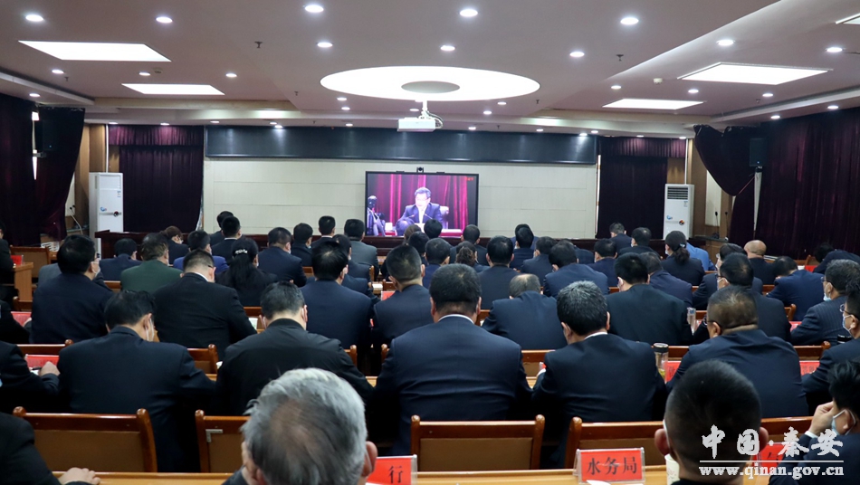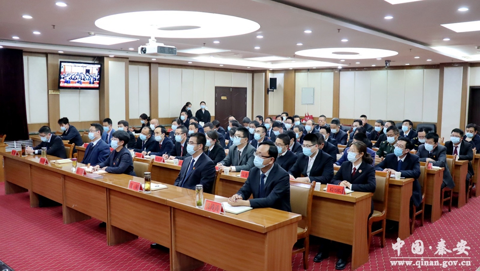 秦安縣領(lǐng)導(dǎo)程江芬、文斌、薛天勝、張濤濤、楊成在秦安分會(huì)場收聽收看會(huì)議。