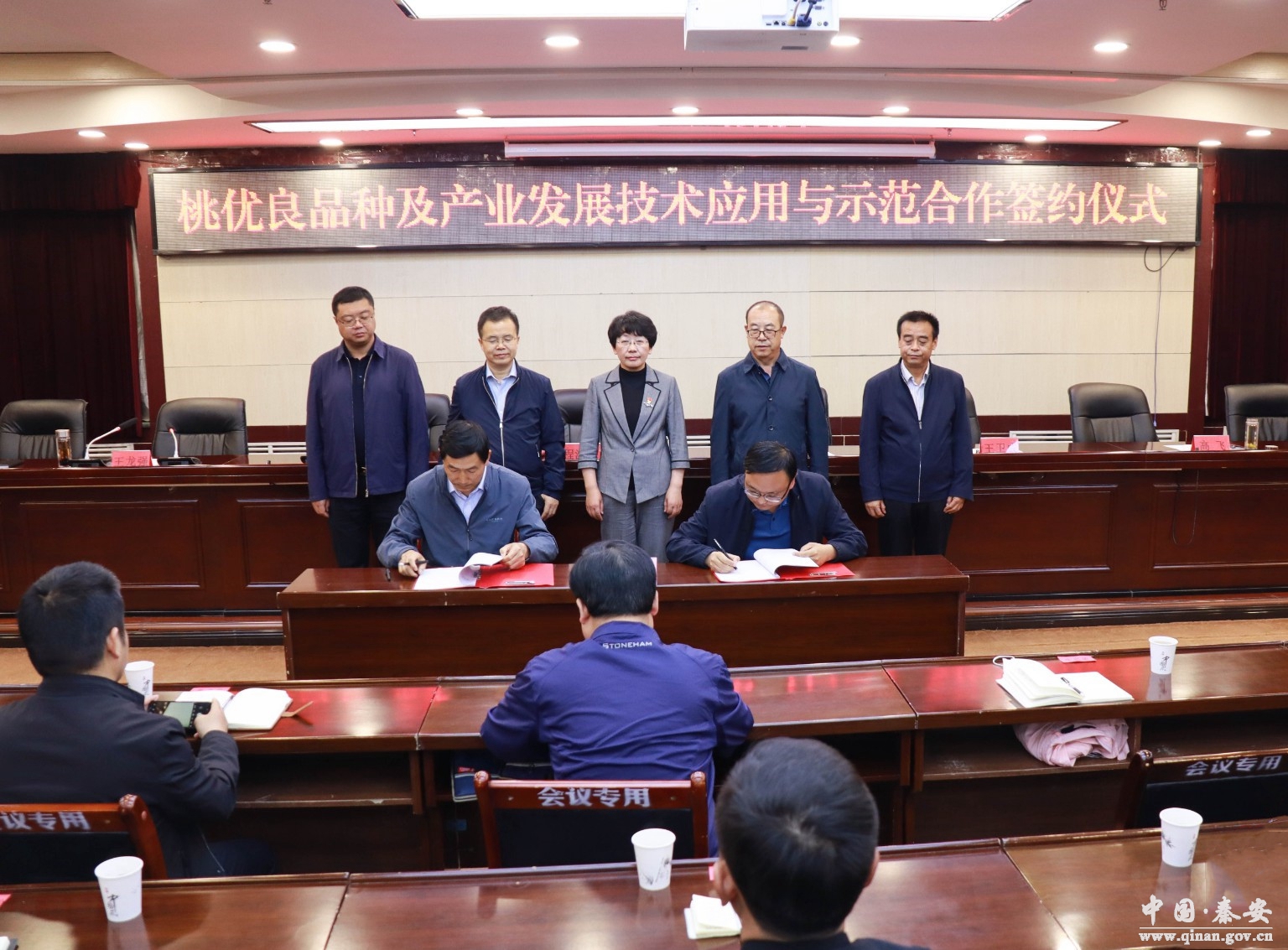 國家桃產(chǎn)業(yè)技術(shù)體系蘭州綜合試驗站站長、研究員王發(fā)林,甘肅省農(nóng)業(yè)科學(xué)院林果花卉研究所書記、副研究員王衛(wèi)成,甘肅省農(nóng)業(yè)科學(xué)院林果花卉研究所所長王鴻,秦安縣委副書記、縣長程江芬,縣領(lǐng)導(dǎo)王龍強、張濤濤、高飛參加簽約儀式。