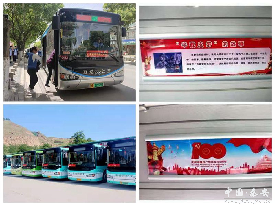 豐富黨史宣傳載體。秦安縣積極創(chuàng)新形式、不斷豐富宣傳載體,通過在公交車車廂內(nèi)張貼宣傳標(biāo)語,讓公交車成為流動的黨史教育宣傳員,公交車廂成了黨史學(xué)習(xí)教育的流動“微課堂”,從而讓更多的市民加入到學(xué)習(xí)黨史、了解黨史的行列中來,持續(xù)推動全縣黨史學(xué)習(xí)教育入腦入心。