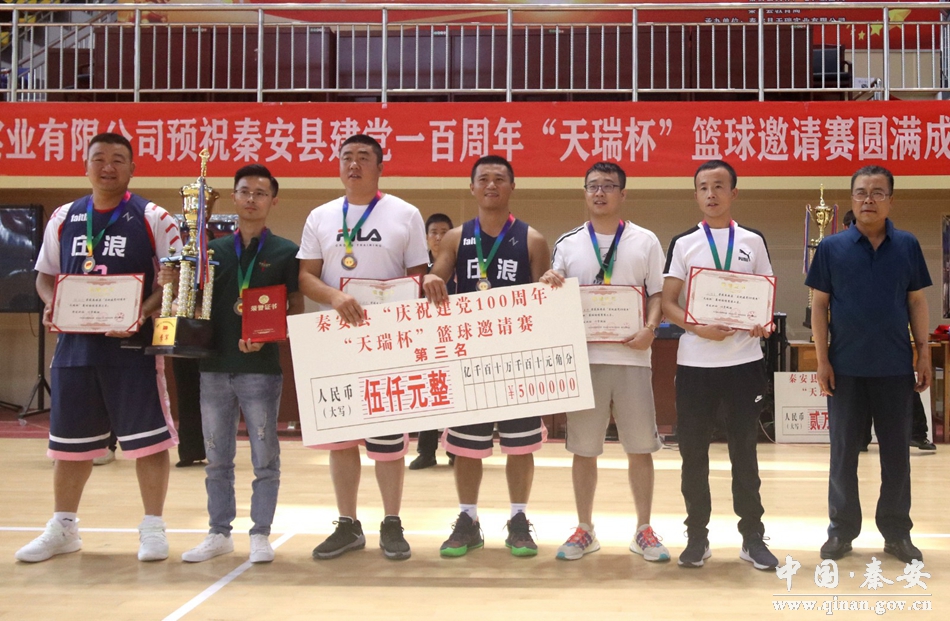 經(jīng)過3天激烈角逐,6月27日,秦安縣“天瑞杯”籃球邀請(qǐng)賽圓滿結(jié)束。秦安縣委常委、宣傳部部長賈應(yīng)蝶,縣政協(xié)副主席銀才參加活動(dòng),并為獲獎(jiǎng)球隊(duì)及“優(yōu)秀裁判員”“優(yōu)秀教練員”“優(yōu)秀運(yùn)動(dòng)員”“最佳個(gè)人”等獲得者頒發(fā)獎(jiǎng)杯、獎(jiǎng)牌及證書。