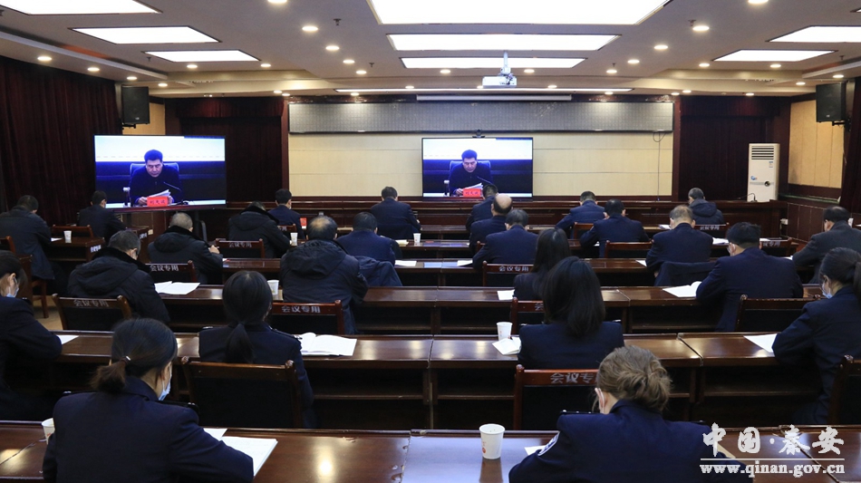 秦安縣領導龐勝前、薛天勝在秦安分會場收聽收看了會議。