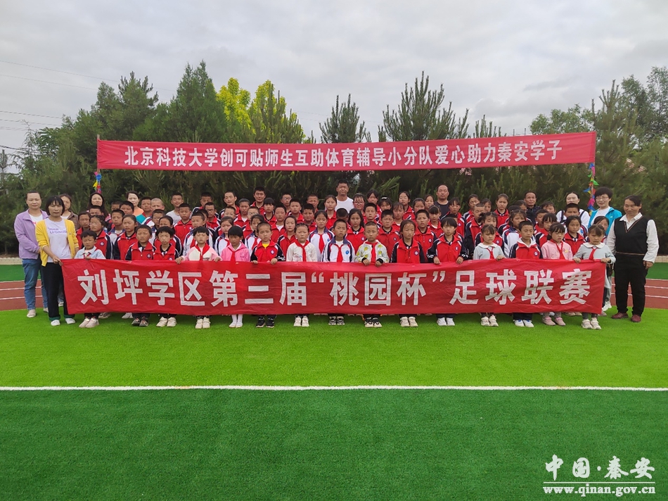 為喜迎黨的二十大勝利召開,進一步貫徹“五項管理”,落實“雙減”政策,普及足球運動,豐富足球文化,秦安縣劉坪學(xué)區(qū)開展了以“喜迎二十大·健康向未來”為主題的少兒足球聯(lián)賽,比賽在劉坪學(xué)區(qū)塘沽希望小學(xué)舉行。受限于場地限制,該活動是近兩年學(xué)區(qū)首次舉辦足球聯(lián)賽。2021年,經(jīng)北京科技大學(xué)幫扶辦副主任、駐秦洼村第一書記高龑多方聯(lián)系協(xié)調(diào),北科大校友企業(yè)東元昱材捐資10萬元用于修建學(xué)區(qū)草皮足球場,解決了全學(xué)期沒有場地開展足球活動的現(xiàn)實難題。場地于2022年5月竣工。北京科技大學(xué)創(chuàng)可貼師生互助體育輔導(dǎo)小分隊為學(xué)區(qū)捐贈1000元體育用品,助力學(xué)區(qū)體育文化事業(yè)發(fā)展。