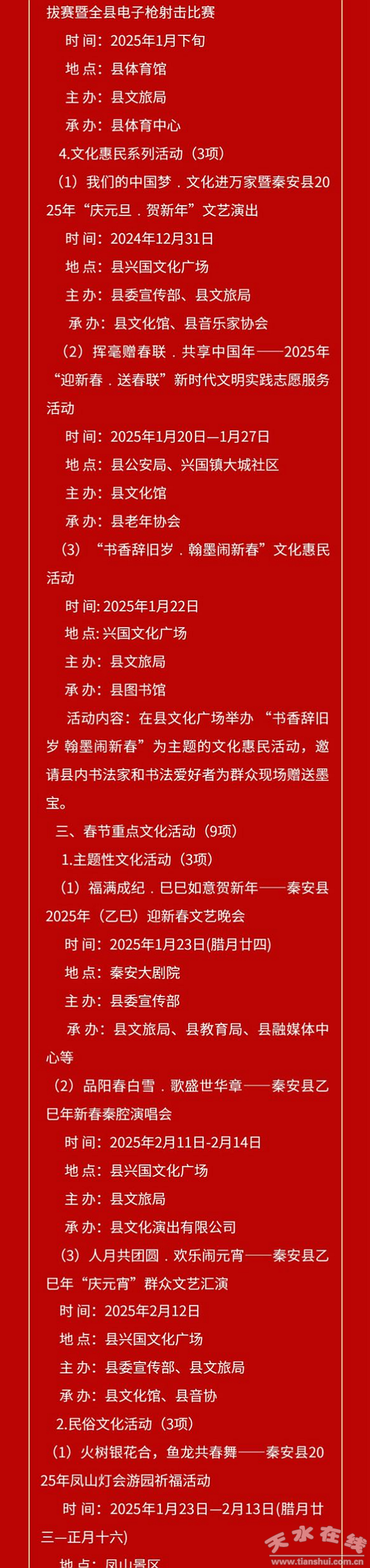 秦安縣2025年元旦春節(jié)文體旅游系列活動