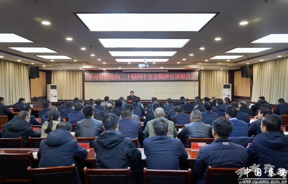 12月19日,秦安縣委副書記、代理縣長張恒剛向各鎮(zhèn)和縣直有關(guān)單位主要負責人宣講黨的二十屆四中全會精神。