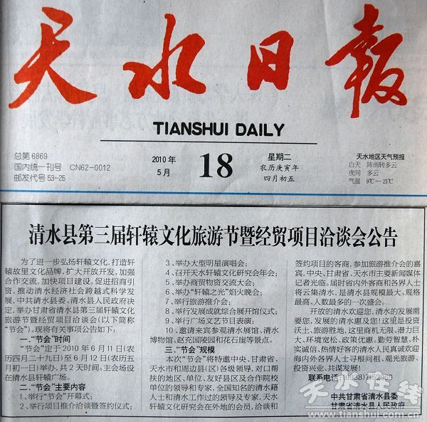 第三屆軒轅文化旅游節(jié)暨經(jīng)貿(mào)項(xiàng)目洽談會(huì)籌備工作開(kāi)展以來(lái),宣傳報(bào)道工作緊緊圍繞“弘揚(yáng)軒轅文化、傳承華夏文明、打造拜祖圣地、擴(kuò)大對(duì)外開(kāi)放、加強(qiáng)合作交流、推動(dòng)科學(xué)發(fā)展”這一“節(jié)會(huì)”主題,加大宣傳力度,進(jìn)一步擴(kuò)大清水的對(duì)外影響力和吸引力,為節(jié)會(huì)的成功舉辦營(yíng)造了濃厚的輿論氛圍。