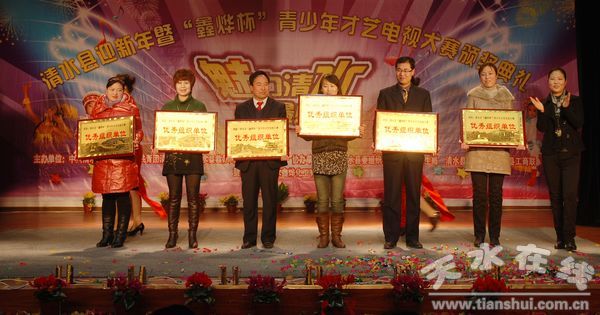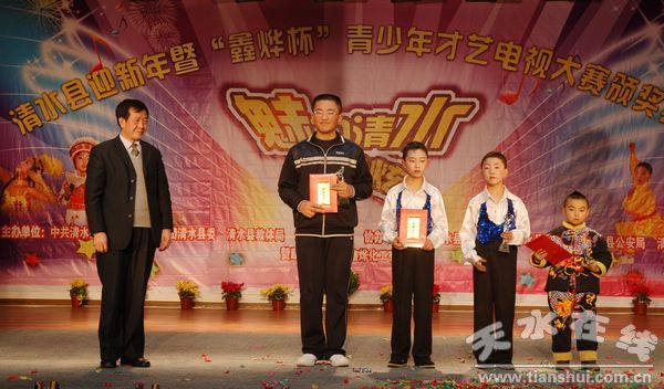 (縣政協(xié)副主席王明順為獲得最佳才藝獎的選手頒獎)