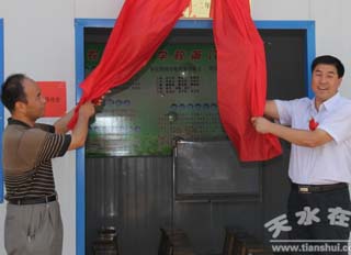 (省農(nóng)廣校黨支部書記唐耀明,清水縣委書記劉天波為清水縣農(nóng)民田間學(xué)校揭牌)