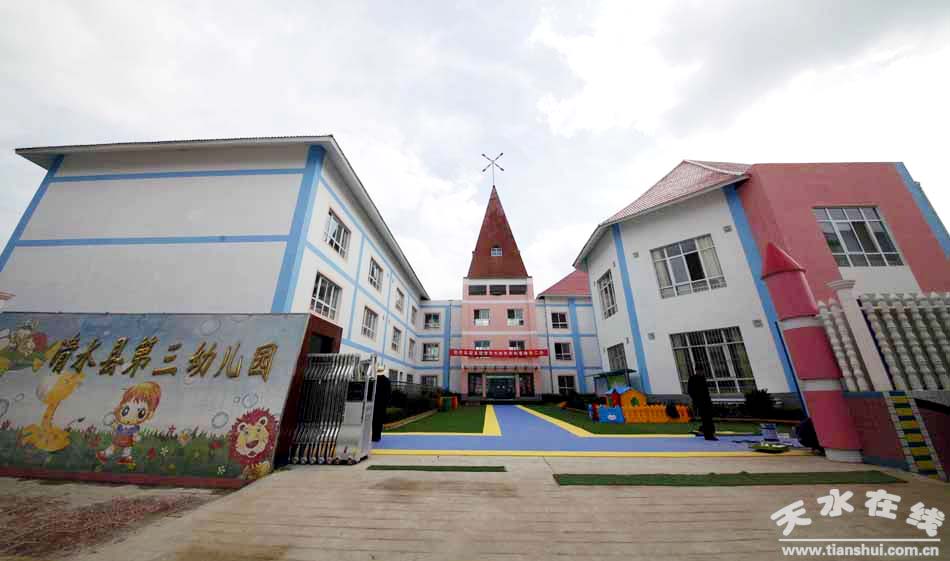 清水縣第三幼兒園設施先進、功能齊全,初步建成了班級家園網(wǎng)絡互動交流平臺。擁有多塊活動場地、多功能音樂舞蹈廳、多媒體投影教室、多功能組合大中型玩具、嬉水池和種植園等設施,引進了標準化的大灶食堂設備。有12個活動室與寢室融為一體的教學班,每個班均有寢室、衛(wèi)生間、盥洗室、衣帽柜。為每個幼兒配有一巾、一杯、一碗、一勺。活動室采用適合3-6歲幼兒年齡特點的黃、綠、藍彩色環(huán)保漆粉刷裝修、環(huán)保木地板鋪設,并配有電子琴以及液晶電視、多功能播放機等多媒體電教設備。戶外場地采用目前先進環(huán)保的幼兒園專用塑膠拼版和人工草坪鋪設。是一所綠化、美化、童趣化、教育化為一體的兒童樂園。