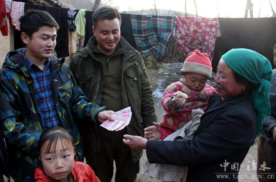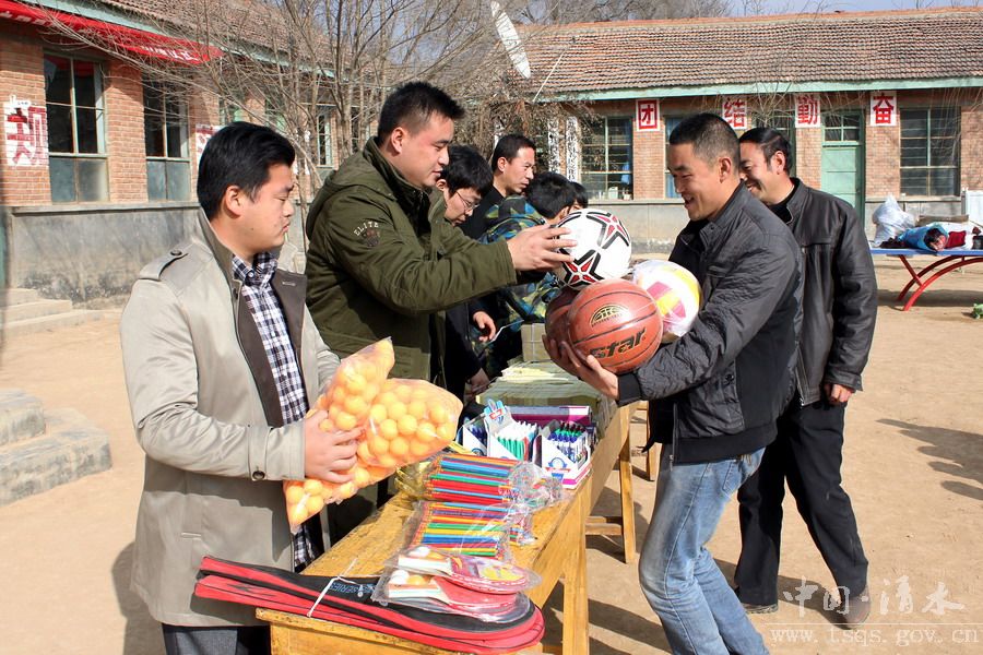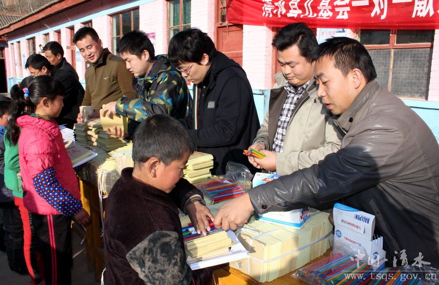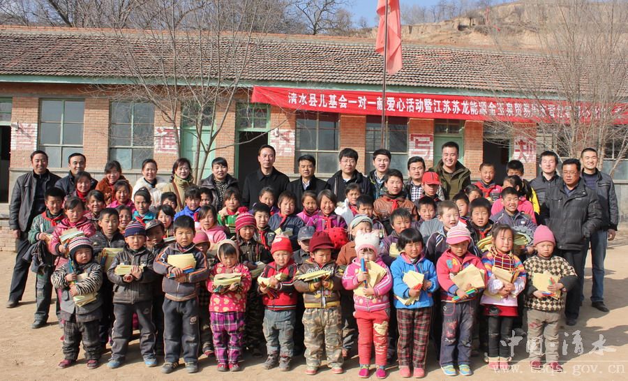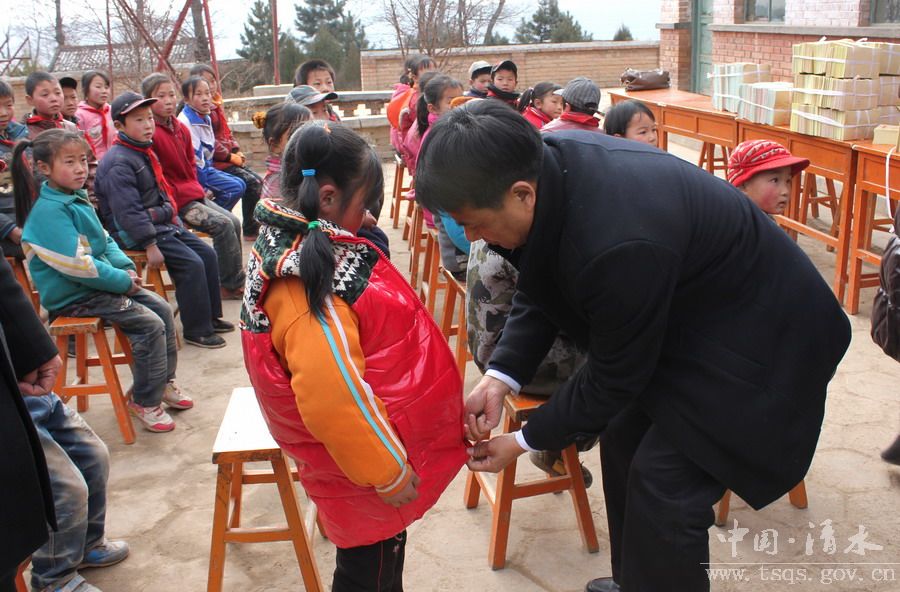 今年11月份,周玉泉先生了解到清水縣貧困山區(qū)學生的一些基本情況后,就產(chǎn)生了來清水走訪慰問的念頭。他們在短短的10天之內(nèi)就募捐了大量的現(xiàn)金和衣物。12月6日他們從江蘇江陰出發(fā), 8日早上到達清水,他們不顧旅途勞累,在縣政府辦公室、兒童基金會工作人員及一些志愿者的陪同下深入新城、白駝2鄉(xiāng)鎮(zhèn)4所小學舉行了愛心捐助儀式。儀式結(jié)束后,他們走訪了6戶困難學生家庭,詳細了解困難戶家庭的收入、生活及子女上學問題,并為他們捐贈現(xiàn)金10000元,衣物60多件。