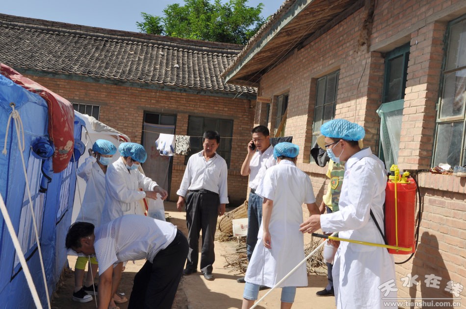 (在災(zāi)民安置點(diǎn)進(jìn)行衛(wèi)生防疫)