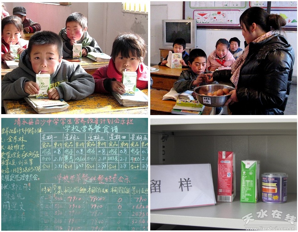 為了把這項(xiàng)惠民工程實(shí)施好,清水縣結(jié)合實(shí)際情況,按照“政府主導(dǎo)、因地制宜、安全第一”的原則,認(rèn)真實(shí)施,穩(wěn)步推進(jìn)。供餐內(nèi)容為雞蛋、牛奶、100%蘋果汁、甜玉米罐頭和面包,供餐模式采用食堂供餐、家庭供餐和企業(yè)供餐相結(jié)合的方式,為農(nóng)村學(xué)生提供了營養(yǎng)餐。同時(shí),該縣把營養(yǎng)改善計(jì)劃試點(diǎn)工作履行職責(zé)情況納入了對各部門和各鄉(xiāng)鎮(zhèn)政府的年度考核內(nèi)容,成立了專門的領(lǐng)導(dǎo)小組,建立了責(zé)任體系,開展了營養(yǎng)改善計(jì)劃食品安全知識培訓(xùn),確保了全營養(yǎng)改善計(jì)劃的順利實(shí)施。