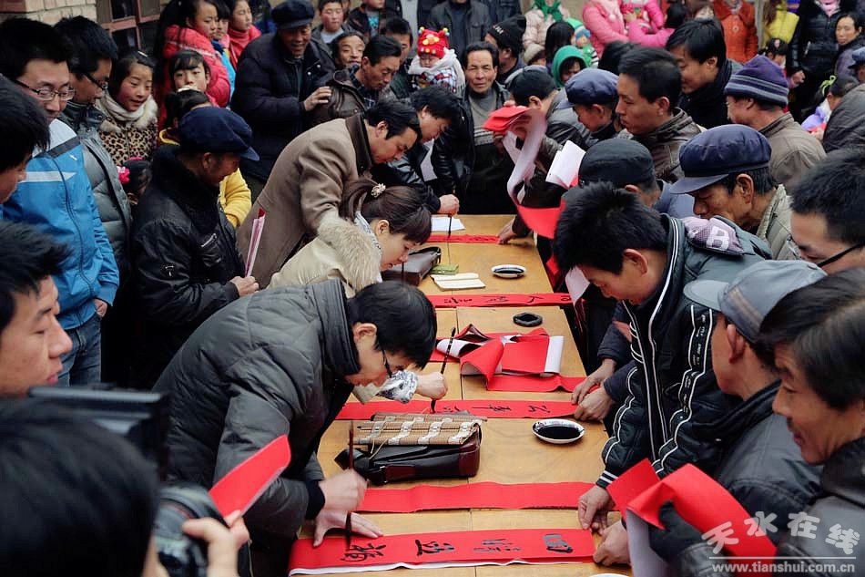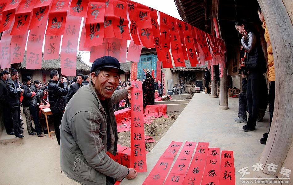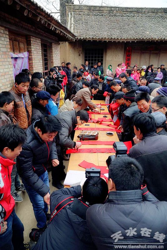 1月18日(農(nóng)歷臘月十八日)上午8時30分,天水在線帶領(lǐng)邀請到的天水市書法家協(xié)會副主席周宇春、天水市美術(shù)家協(xié)會副主席趙暉等書法家,天水市歌舞團青年男高音楊濤、天水市秦劇團、新天視文化傳播中心、麥積區(qū)金孔雀藝術(shù)中心的演職人員和天水在線部分博主、秦州區(qū)攝影家協(xié)會、麥積區(qū)攝影家協(xié)會部分會員前往中國傳統(tǒng)村落——清水縣賈川鄉(xiāng)梅江村開展“寫春聯(lián)、送文藝”拜早年活動。