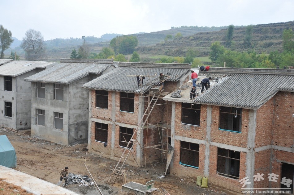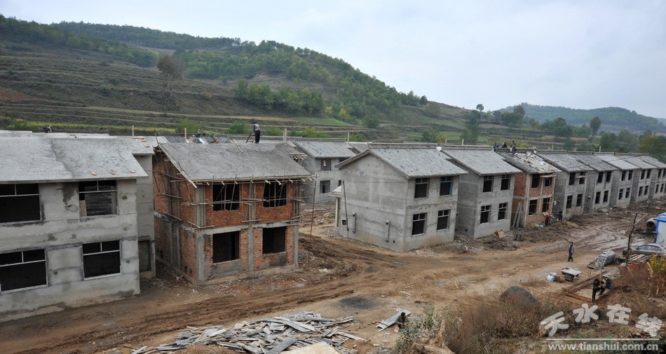 當(dāng)前,走進(jìn)秦亭鎮(zhèn)店子村新農(nóng)村建設(shè)現(xiàn)場,一排排二層別墅式新居主體已經(jīng)建成,村民們正在瓦房、粉墻、平整場地,收拾掃尾工程。