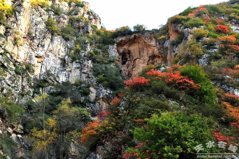 進(jìn)入小泉峽谷,懸崖絕壁,如劈如削,幽深雄奇,牛頭河穿越峽谷常年奔流不息。小泉峽谷的劉秀洞一帶,奇峰異景,溪水瀑布,漫山紅葉,美不勝收。小泉峽絕壁的“劉秀洞”,相傳為劉秀避戰(zhàn)蝸居之地,劉秀洞妙趣天成的自然造型,更是充滿神秘色彩,成為清水深秋的一大旅游景觀。