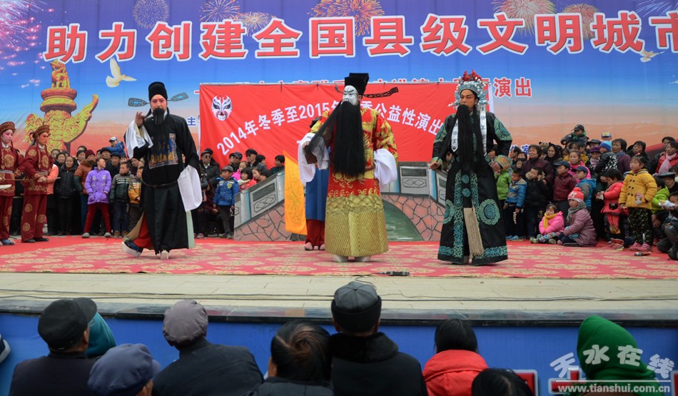 2014年12月31日至2015年1月2日,由中共清水縣委宣傳部、清水縣文化廣播影視局主辦,清水縣秦劇團(tuán)有限責(zé)任公司承辦的公益性演出送戲下鄉(xiāng)活動(dòng)在軒轅廣場(chǎng)舉行,城鄉(xiāng)近萬(wàn)名觀眾觀看了演出,在2015年新年,給大家送上了一份文化厚禮。